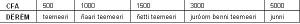 CONVERTING DËRËM TO CFA – When talking money, the number ñaari teemeeri (200) is the same as ñaari teemeeri dërëm (1000 CFA). To get the CFA equivalent of dërëm, take the number of dërëm and multiply it by 5, for example, teemeeri dërëm – 100 dërëm or 100 x 5, is 500 CFA.
